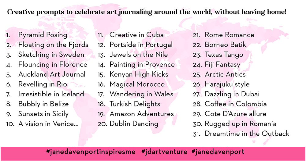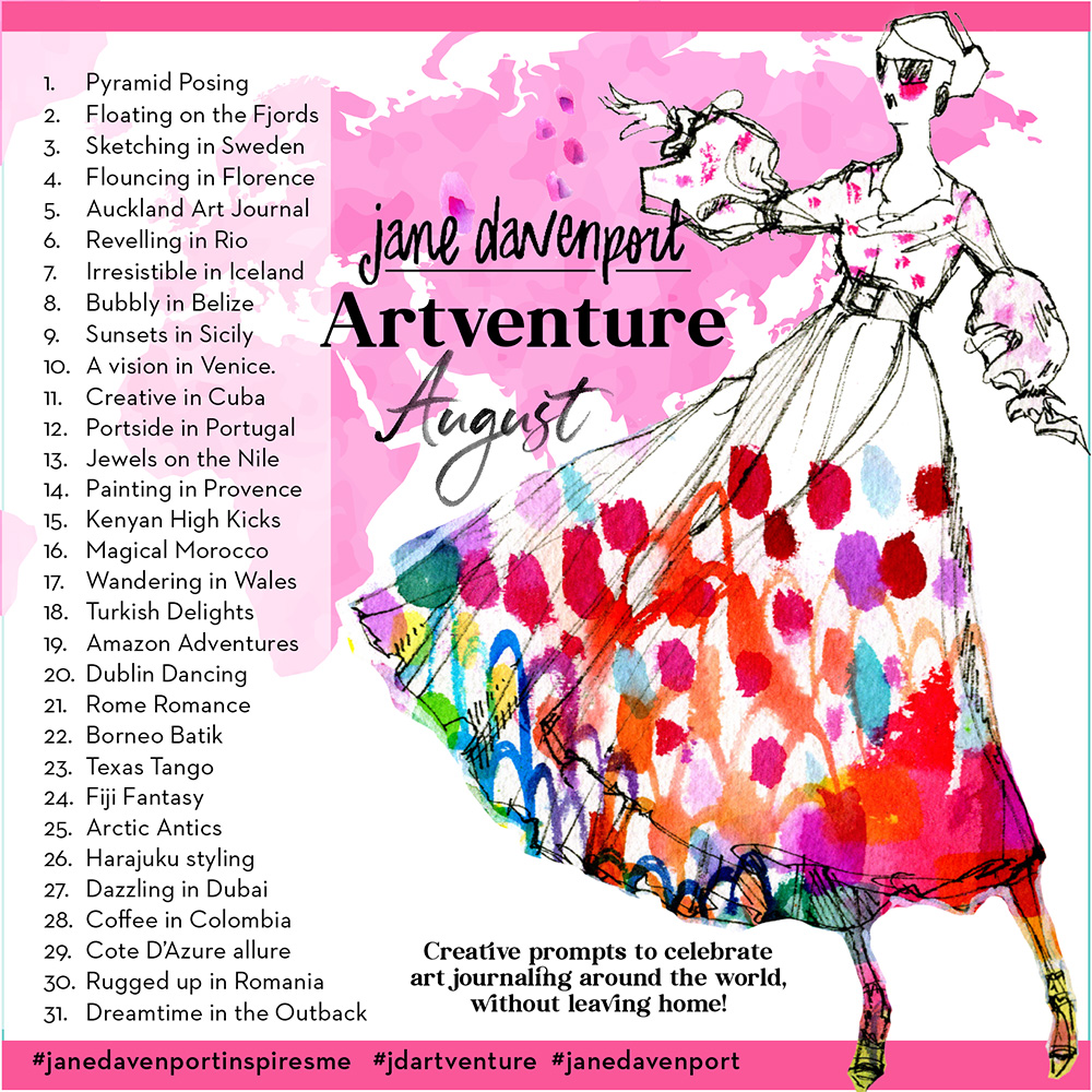 This month join me and all the fabulous Davenpeeps in my Facebook group and on Instagram in Artventure August! The Creative prompts are just there to give you a starting point each day and you can interpret the prompt as you like. Sticking to a drawing challenge is not only fun, it also helps you upskill as you create each day.