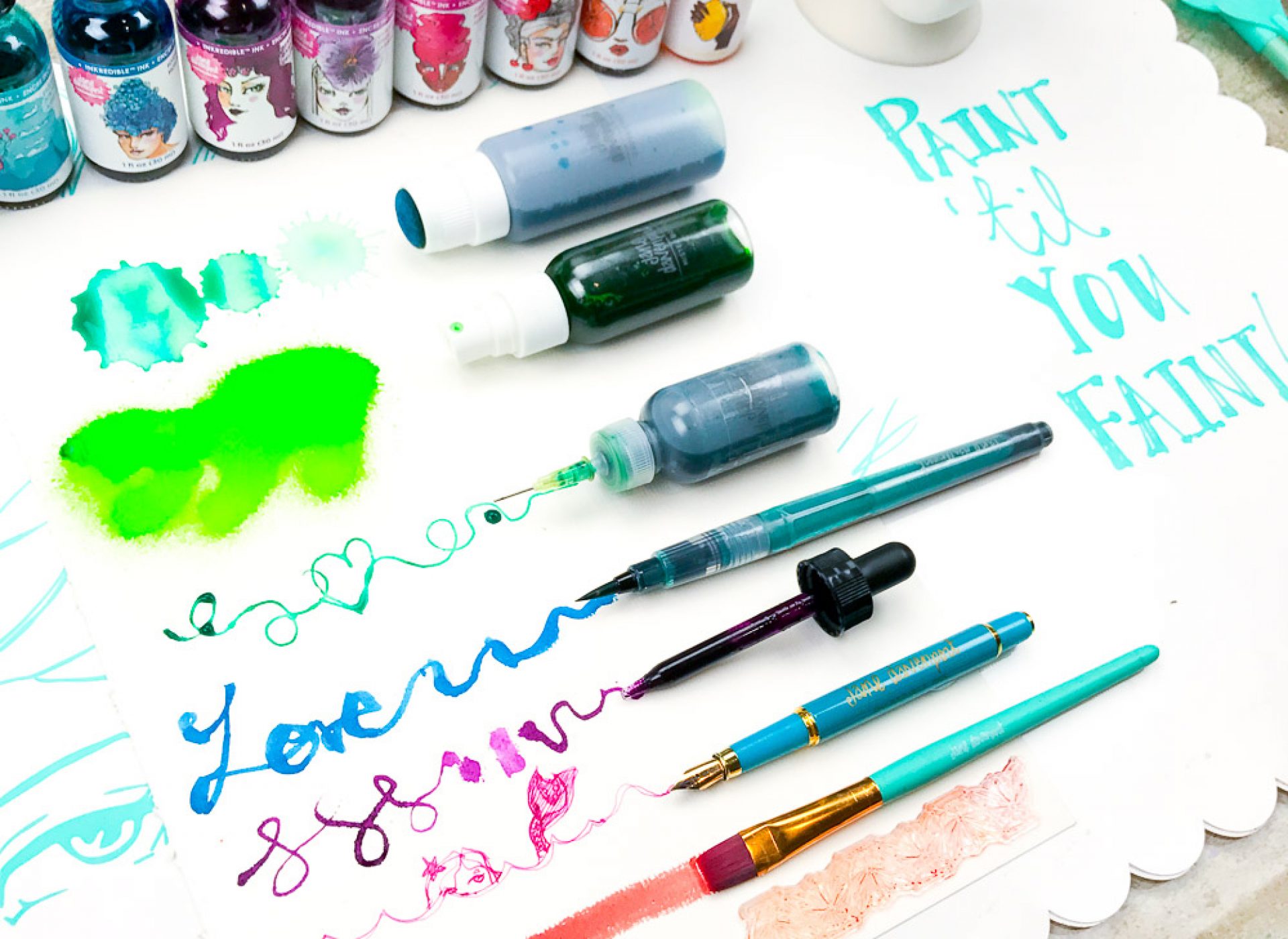 You can use the lovely INKredible inks in all three INKredible pens, the new Ink Brush, the Fine tip bottle, the Mister Bottle and the Dauber bottle!