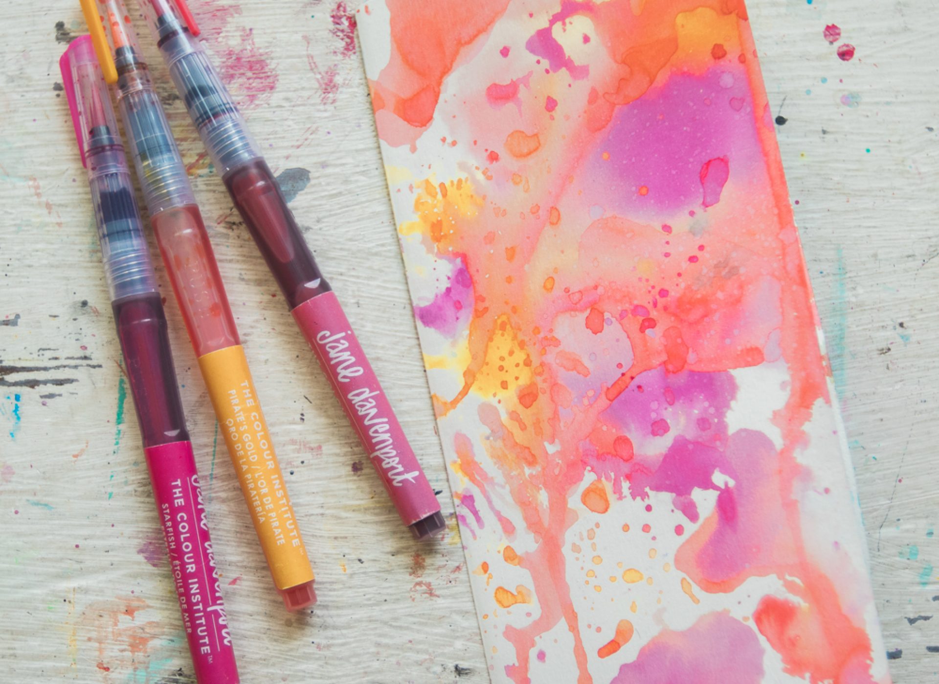When I first started playing with Jane’s Mermaid Markers, I was so intrigued with how they reacted to each other ANDÂ to water. I started to experiment with different ways I could layer the ink and I just LOVE this marbled background look!