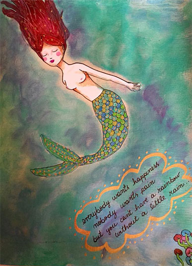 We create my favourite mythical creatures on a new substrate! I have created many, many Mermaid Rocks for my Gallery shows. Each one has a story about the mermaid that inspired them.