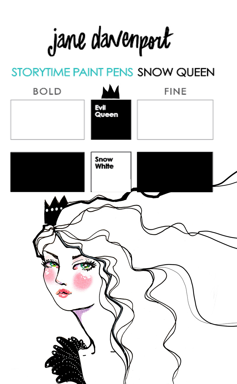 Add crisp black and white accents to your paintings, paper crafts or mixed media projects with the Jane Davenport Snow Queen StoryTime Paint Pens from the Artomology Collection by Spellbinders. The package includes 4 paint pens - 2 board nib and 2 fine nib.