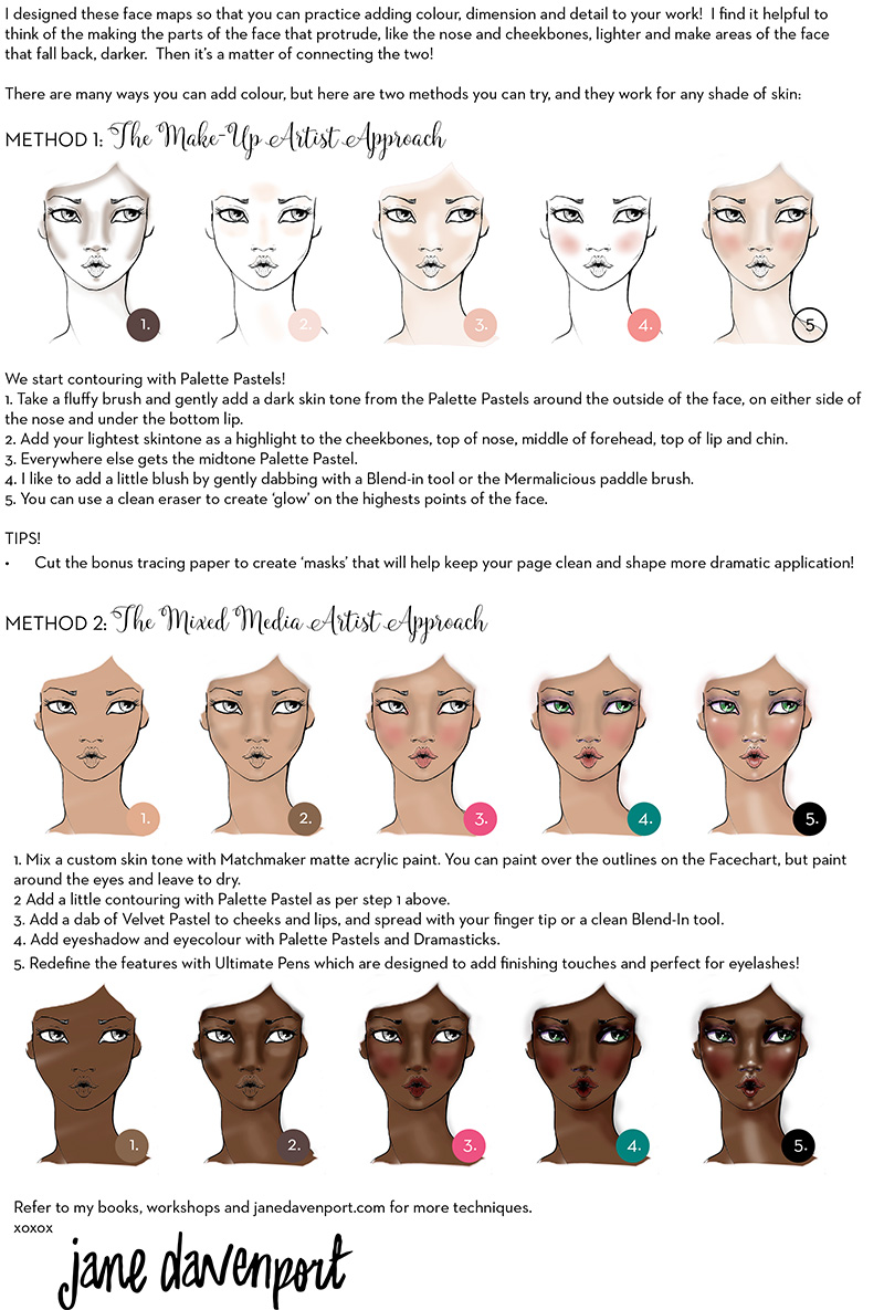 There is nothing like this set of 18-6 x 9” sheets of printed mixed media paper and 6 sheets of tracing paper. Just like a makeup artist, use the face charts to practice your shading skills with the products from Jane’s Making Faces collection. The paper pad includes a detailed set of directions on how to color and contour your face charts!
