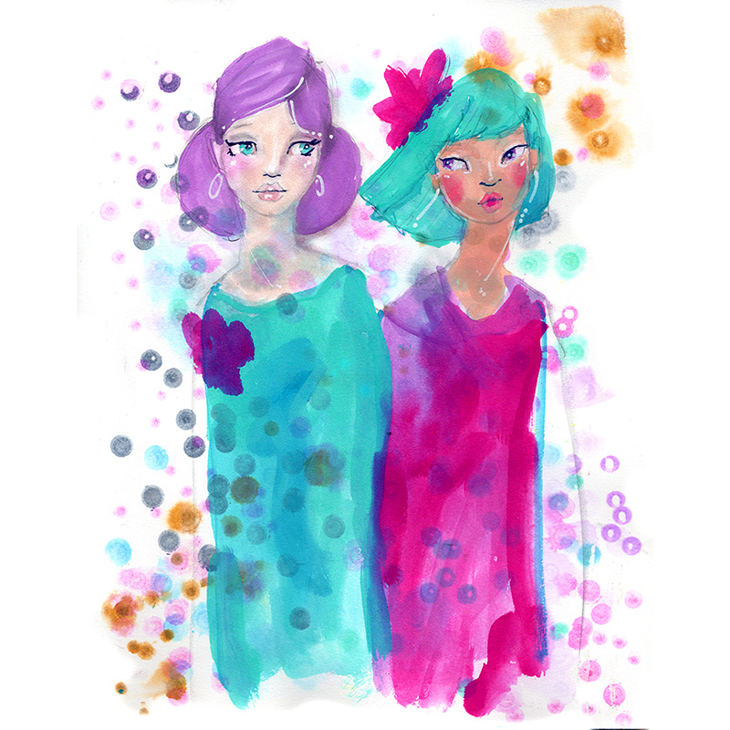 I LOVE to use spots in ink as a way to create movement and effervescence in my backgrounds.