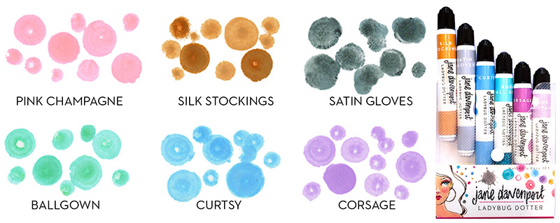 LadyBug Dotters contain a lovely watercolour ink formula that works beautifully with all Jane Davenport inks, paints and pencils!