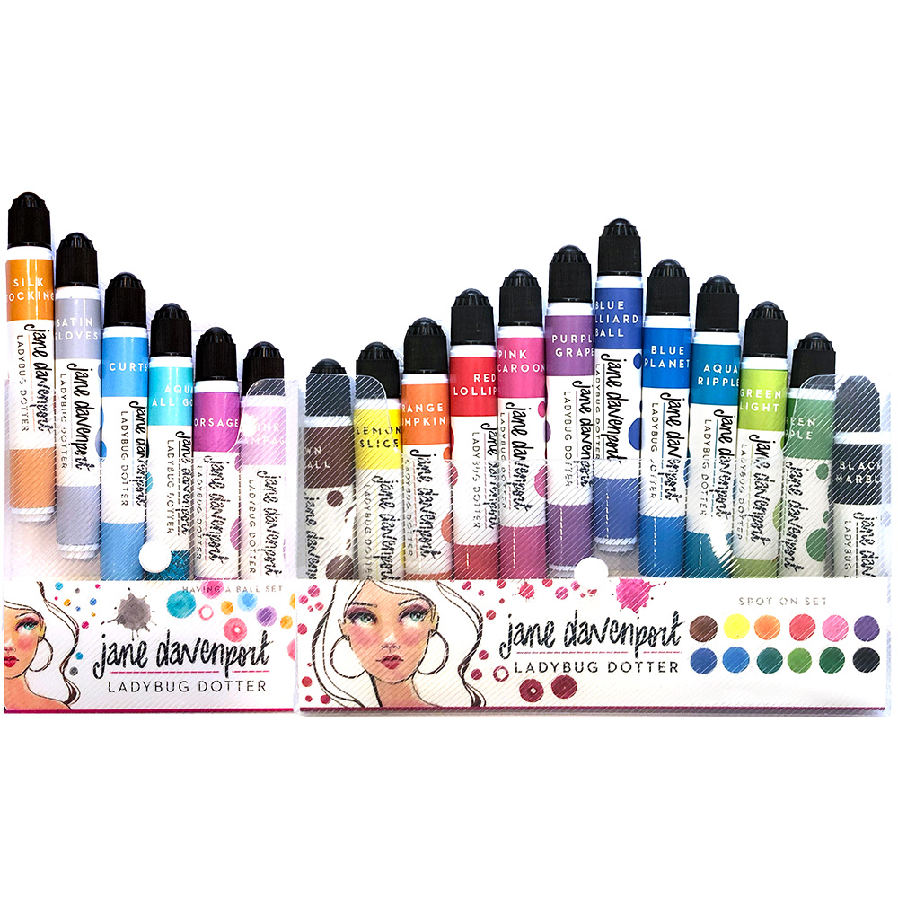 LadyBug Dotters contain a lovely watercolour ink formula that works beautifully with all Jane Davenport inks, paints and pencils!