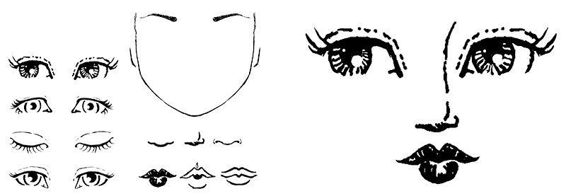 mix and match the four sets of eyes,  nose and lips to make all sorts of people!