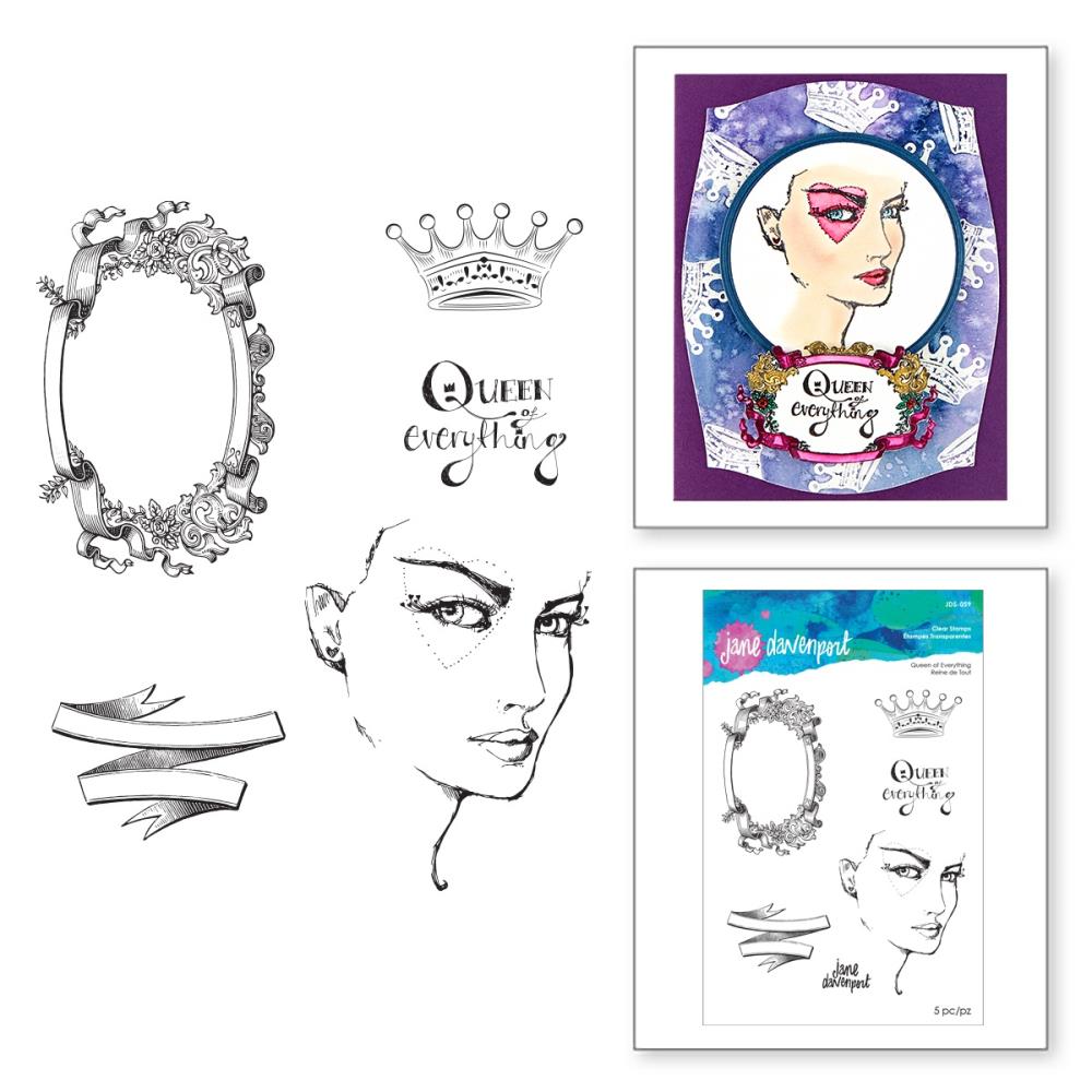 This gorgeously drawn face is both stunning and impactful. Can you count all of the hearts that are hidden in Jane’s illustration? This set is complete with sentiment, crown, decorative label and banner that is ready to adorn any card or journal page.