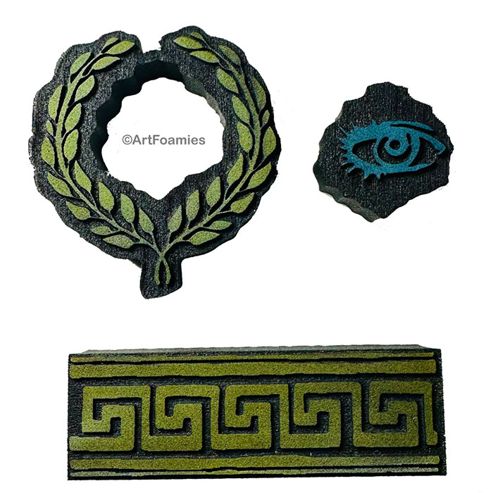 ArtFoamies can perhaps be best likened to a giant foam stamp that allows for very artistic interpretation! Their accepting surface makes them an unbelievably versatile tool that works fabulously with mixed media. Each impression tells a different story!