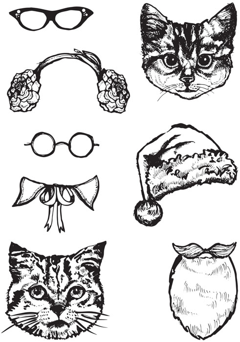 ‘Kitty Christmas’ features Schmooze and Tiger Tim (sweet cats from my childhood) and includes 8 seperate stamps that you can layer to create your own character. You can coordinate them with both the other Christmas sets!