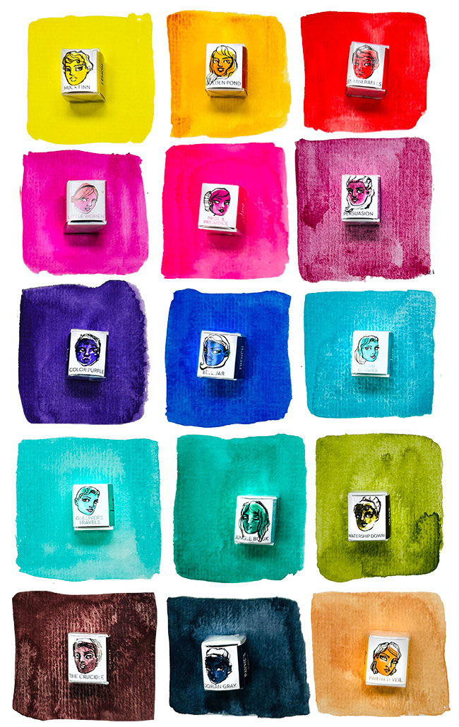 The Book Truck edition of the watercolour Library contains 15 hues, each one named for a beloved book.