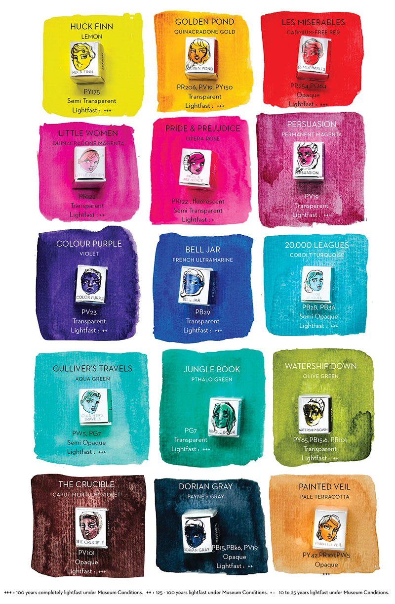 The Book Truck edition of the watercolour Library contains 15 hues, each one named for a beloved book.