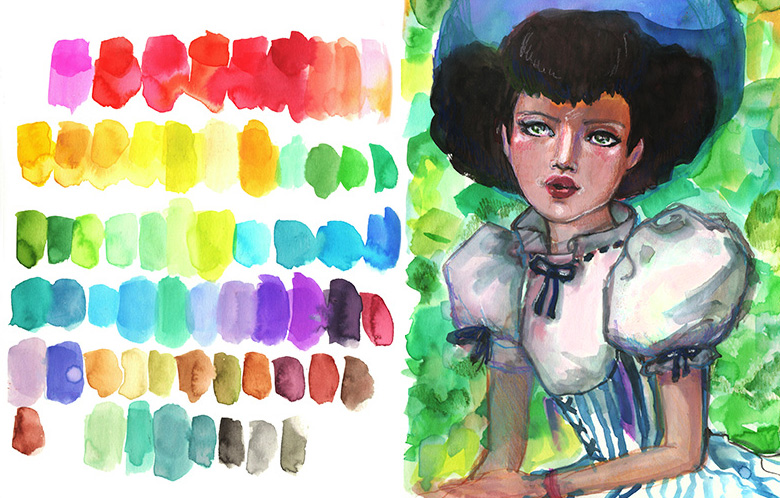 So this Huephoria set allows people to play with the wonder of watercolor purely as a medium… and then as a next step ease into colour mixing with a some colour already in their cheeks!