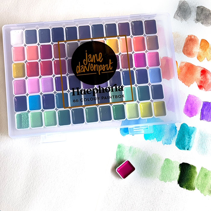 The ‘HUEtopia’  Paintbox features 48 new highly pigmented watercolour pans. Because of the huge colour range you quickly move beyond the basics and into some unique hues! and HUEphoria contains 66 more colours!
