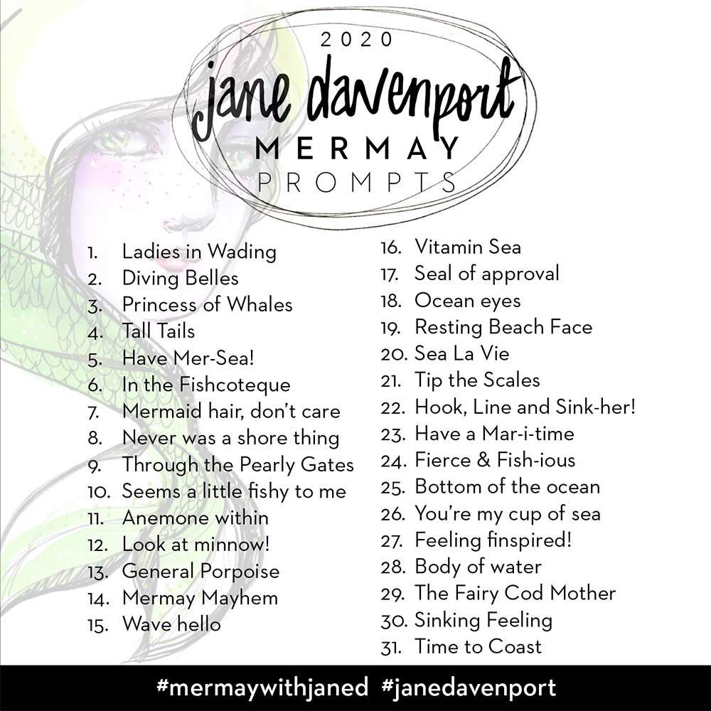 Join me on my Facebook Page each day at 10am Sydney time ( 5pm PST) for a LIVE broadcast and we can do all my creative prompts together in MerMAY! ‘Like’ my page and make sure your notifications are set to on so you know when I start ! Grab your Jane D supplies and let’s have some fun!